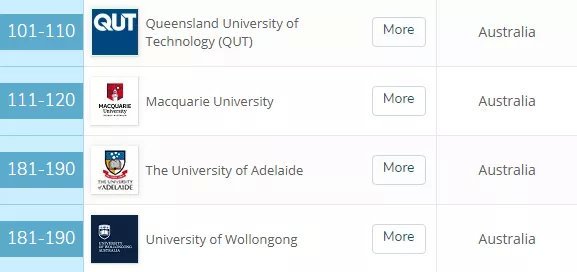 在100-200中間,還有QUT、麥考瑞大學、臥龍崗大學。