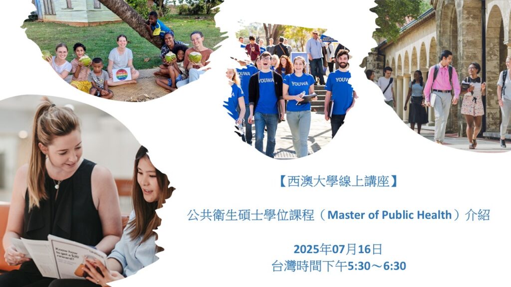 【2025年07月16日 西澳大學線上講座:公共衛生碩士學位課程(Master of Public Health)介紹】